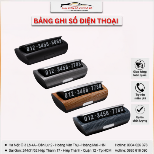 Bảng ghi số điện thoại sang trọng họa tiết vân gỗ, vân đá gắn trên taplo xe