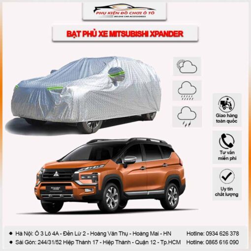 - Phù hợp với dòng xe Mitsubishi Xpander: Bạt được thiết kế vừa vặn với form xe, đảm bảo che phủ toàn bộ xe.
