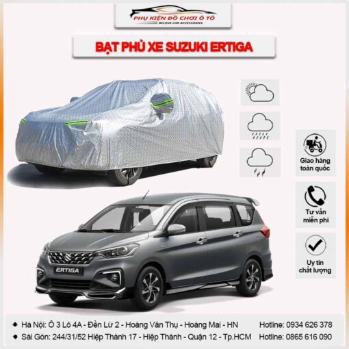 Với bạt phủ xe Suzuki Ertiga 3 lớp vải dù Oxford tại Phụ Kiện Đồ Chơi Ô TÔ VN, chiếc xe của bạn sẽ luôn được bảo vệ tối ưu trước mọi tác động của thời tiết. Chất liệu cao cấp, thiết kế thông minh cùng dịch vụ chuyên nghiệp sẽ mang đến cho bạn sự hài lòng tuyệt đối.