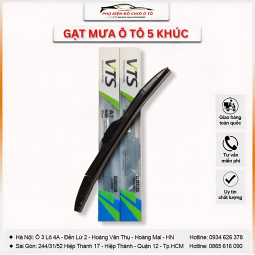 Gạt mưa ô tô 5 khúc là phiên bản nâng cấp với thiết kế hiện đại, cải tiến từ dòng gạt mưa truyền thống. Không chỉ giúp làm sạch nước mưa trên kính lái, sản phẩm còn đảm bảo sự vận hành ổn định trong điều kiện thời tiết khắc nghiệt, mang lại tầm nhìn tối ưu và sự an toàn tuyệt đối cho người lái.