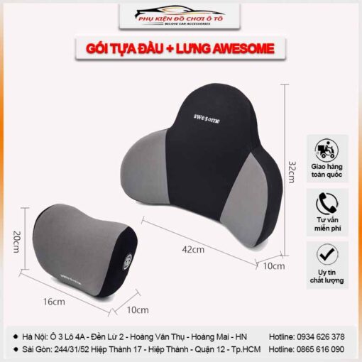 Với những tính năng vượt trội và sự chăm sóc đến từng chi tiết, Gối Tựa Đầu và Tựa Lưng Ô Tô AWESOME chắc chắn sẽ là người bạn đồng hành tuyệt vời trong những chuyến đi dài. Hãy trải nghiệm ngay để tận hưởng cảm giác thư giãn và bảo vệ sức khỏe trong mọi hành trình!