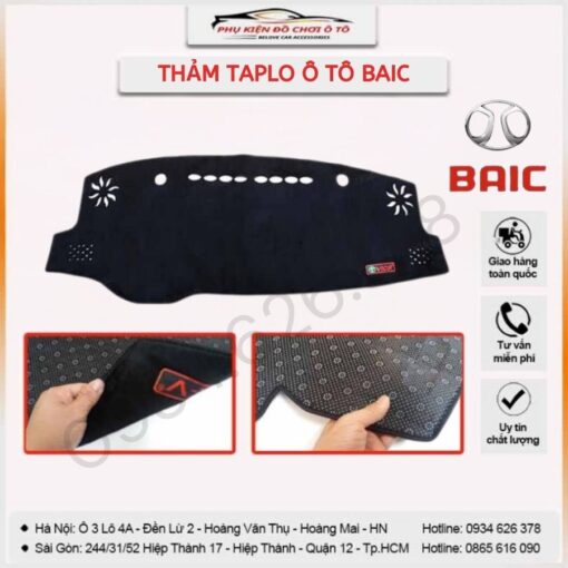 Thảm taplo ô tô Baic là một phụ kiện nội thất không thể thiếu trong xế yêu của bạn. Ngoài chức năng bảo vệ taplo khỏi những tác động xấu từ môi trường, thảm taplo còn góp phần nâng tầm giá trị thẩm mỹ cho không gian bên trong xe. Với sự phát triển của ngành công nghiệp ô tô, thảm taplo ngày càng được cải tiến về chất liệu và kiểu dáng, mang đến sự kết hợp hoàn hảo giữa tiện ích và thẩm mỹ, giúp chiếc xe của bạn trở nên hoàn hảo và sang trọng hơn bao giờ hết.